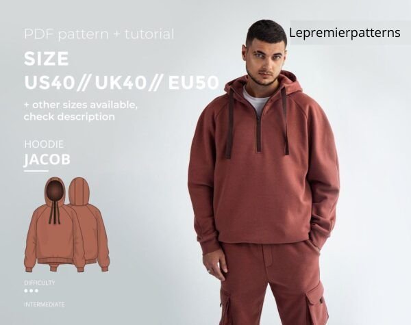 Be the first to review “Jacob hoodie sewing pattern with tutorial size US 40 UK 40 EU 50”